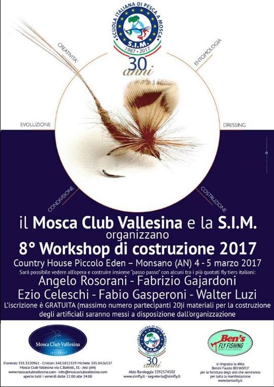 La Sim in collaborazione con il Mosca Club Vallesina orgnizza il 4 e 5 marzo 2017 a Monsano (AN) l’ottavo workshop di costruzione mosche artificiali.