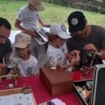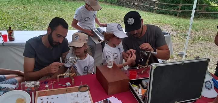 L’ittiologo Stefano Esposito ha aperto il corso spiegando l’ambiente e i suoi abitanti, dopodiché, i bambini, suddivisi in piccoli gruppi, a rotazione hanno appreso le nozioni di lancio dagli istruttori SIM, contemporaneamente ricercato gli insetti con l’ittiologo Stefano e osservato i criteri di costruzione delle mosche facendo prove di montaggio tratte dal manuale Fly line.