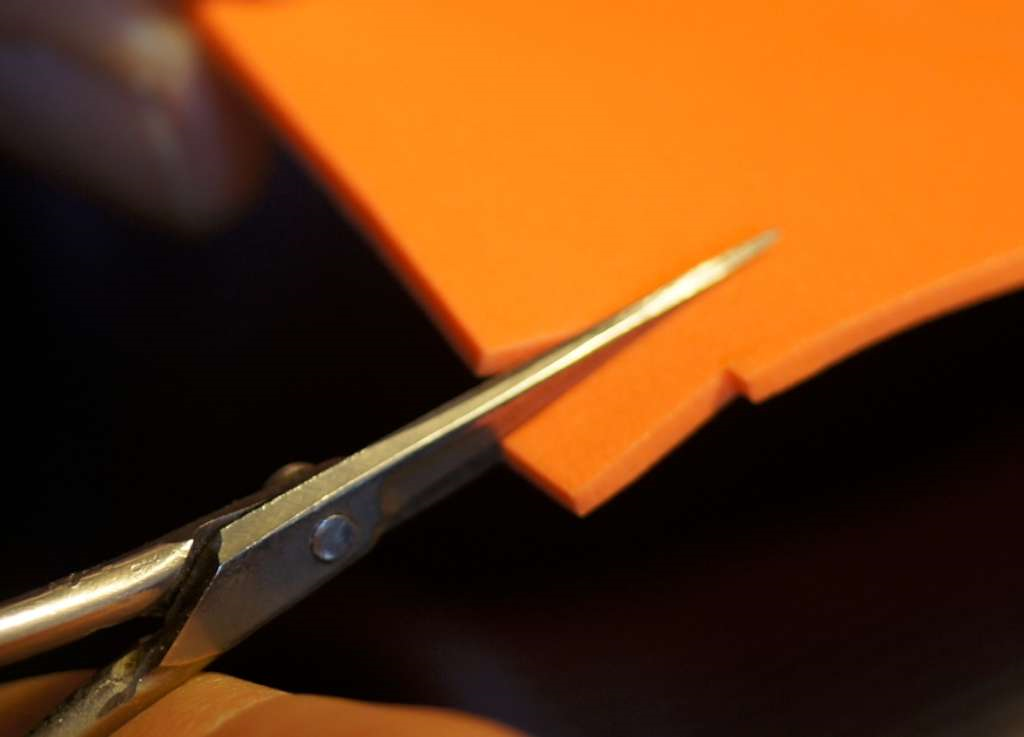 Tagliare un pezzetto di foam arancio