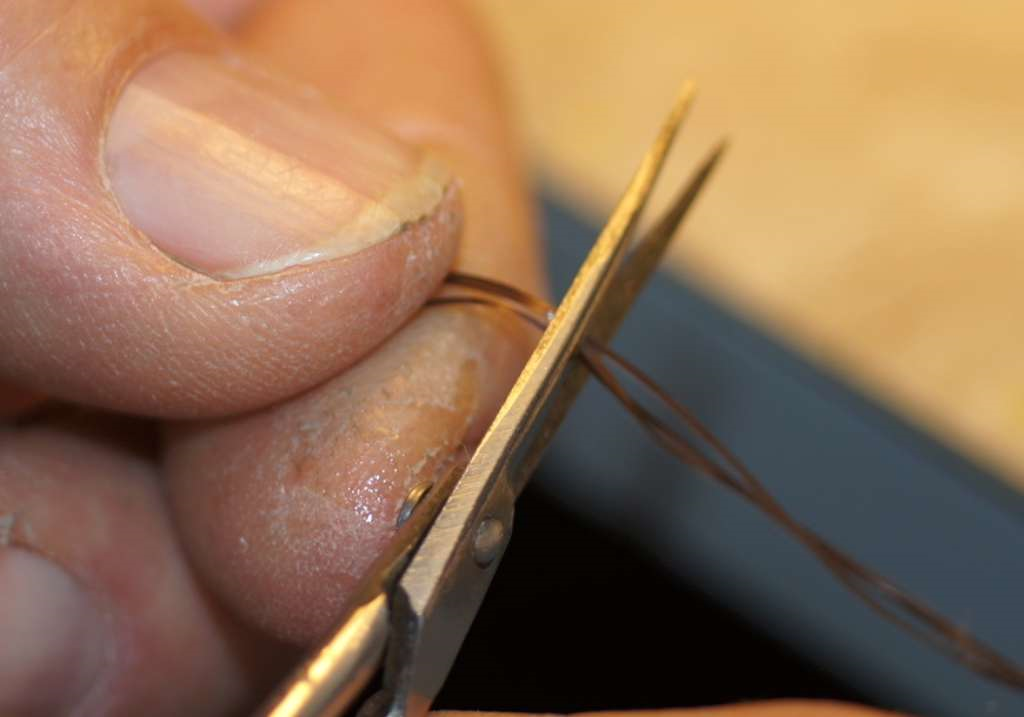 Portarsi con il filo di montaggio sull’occhiello incrociando due volte a sagomare leggermente la testina