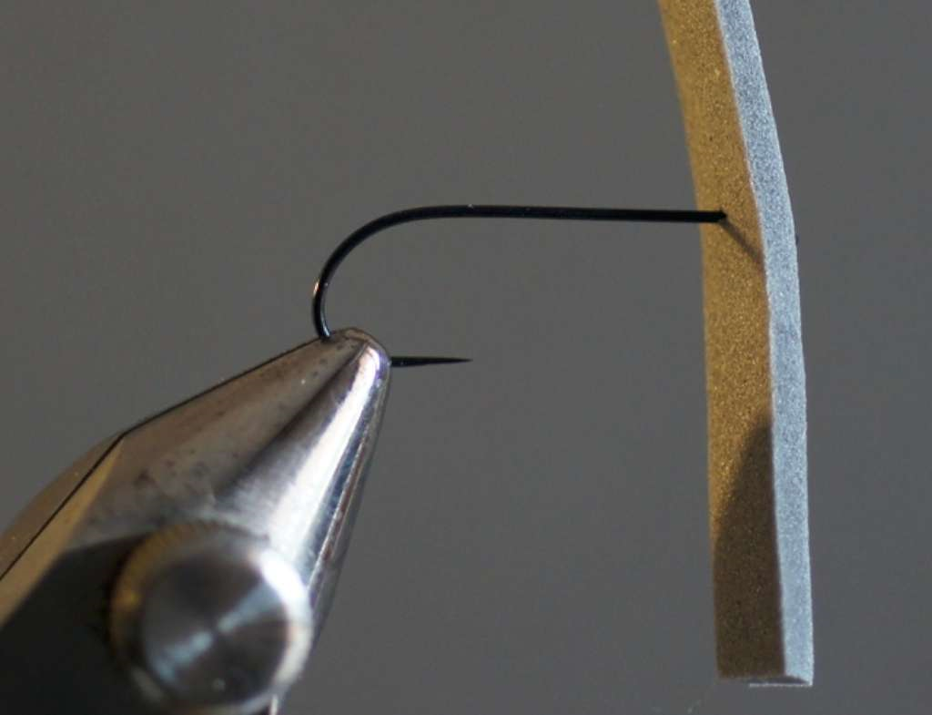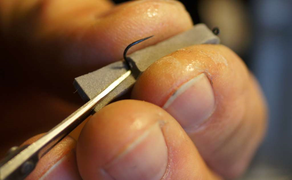 Mettere l’amo nel morsetto e vicino alla curvatura fissare il filo di montaggio