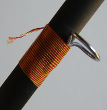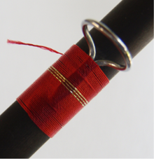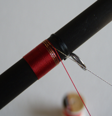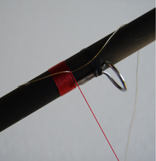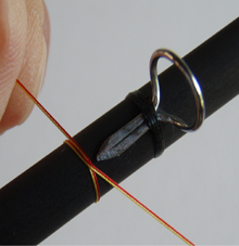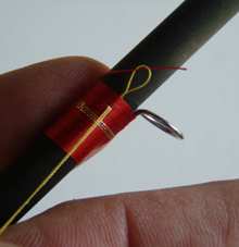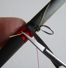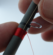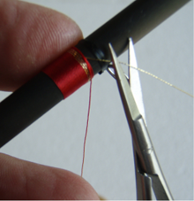 5) Passiamo con il filo di montaggio sopra il nostro tinsel e continuiamo la legatura.