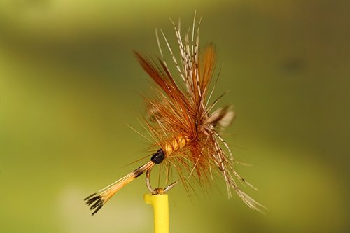 Ali: | 2 hackles di gallo grizzly montate spent e 2 di gallo rosso montate a “V” |
