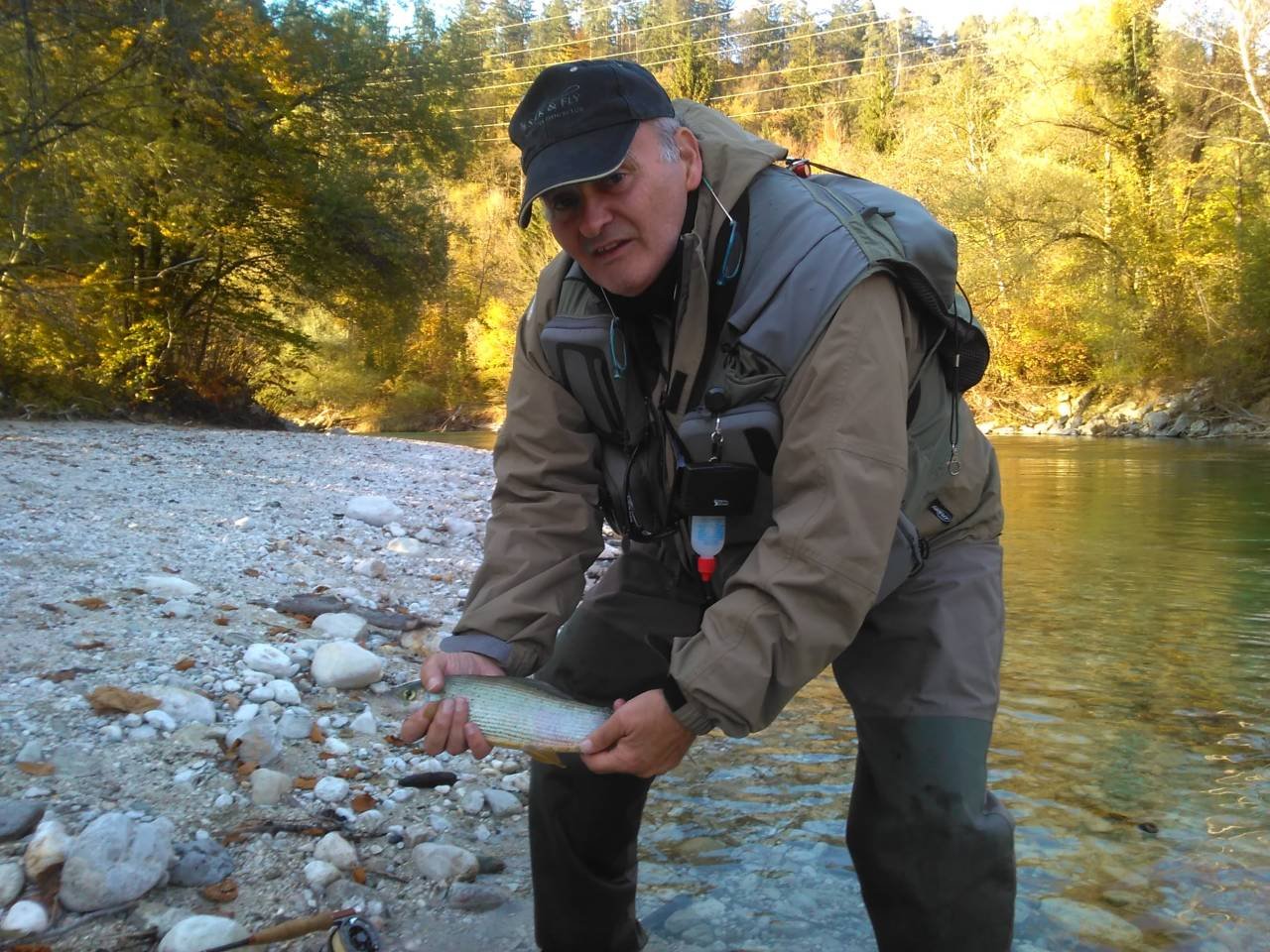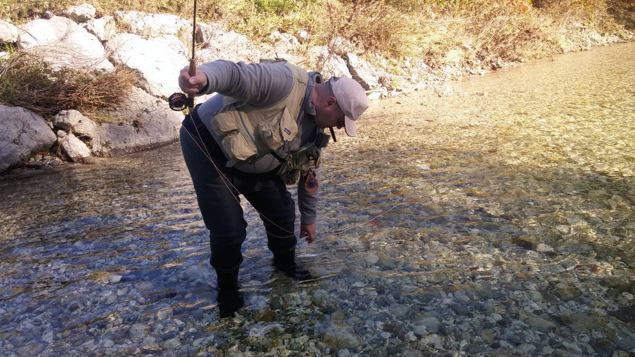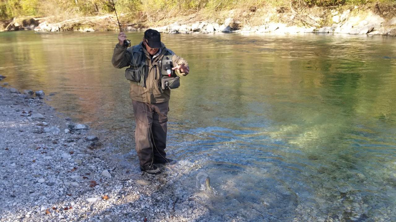Senza dubbio il tratto più a valle, nei pressi di Bled, aveva i livelli un tantino troppo alti vista la conformzione abbastanza larga del fiume, che non ha permesso di pescare negli spot ottimali che si sono rivelati tutti alla sponda opposta o comunque non avvicinabili senza rischiare di farsi un bagno integrale, con conseguente sensibile diminuzione delle catture. La giornata è stata molto ingenerosa, con poche catture, molte micro trotelle e assenza di schiuse.