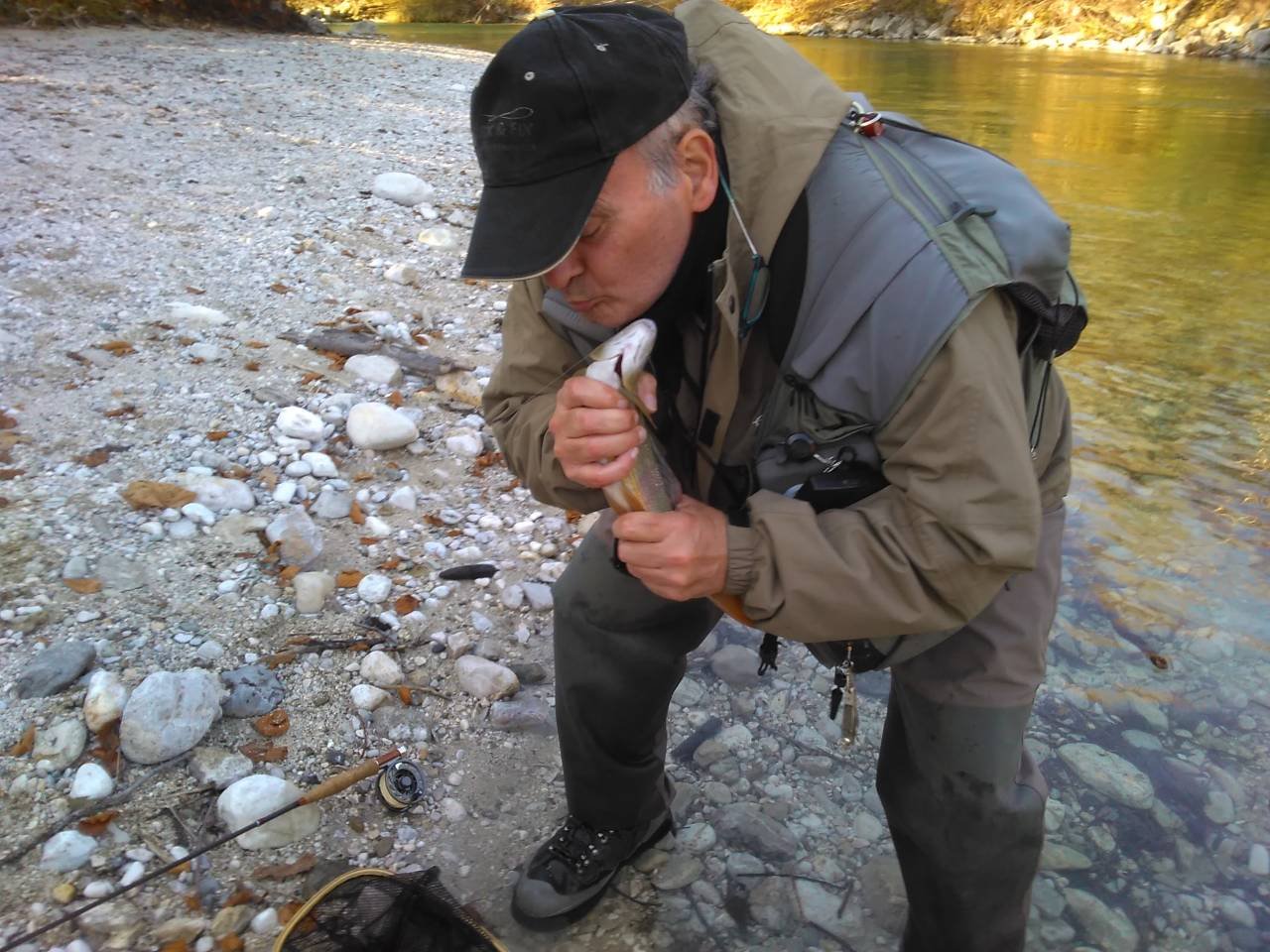 Unica nota veramente positiva di venerdì: il PRIMO TEMOLO di Daniele Scipione, alias Free Willy che quando lo ha catturato ha emesso un URLO che si sono preoccupati sino a Ljubljana. Come mi aveva promesso, dopo aver catturato il suo primo temolo, lo ha baciato, anche se il timallide non ha gradito molto rifiutando la slinguazzata (forse era maschio) e lo ha rilasciato con tutte le cure. Bravo Willy, e tranquillo, la tua dedica è arrivata dove doveva arrivare…