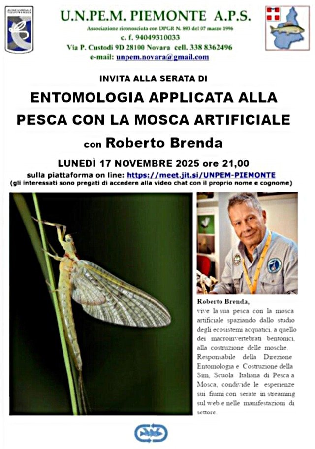 Roberto Brenda della Direzione Entomologia e Costruzione della Scuola Italiana di Pesca a Mosca terrà una videoconferenza di entomologia legata alla pesca con la mosca artificiale proseguendo gli incontri dedicati alla cultura della pesca a mosca organizzati da