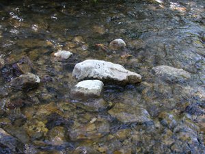Sono sassi bianchi che spiccano nettamente sullo sfondo scuro del torrente. L’esperienza mi ha insegnato che sassi come questi possono celare belle sorprese entomologiche.