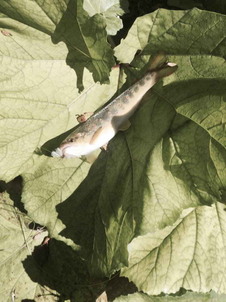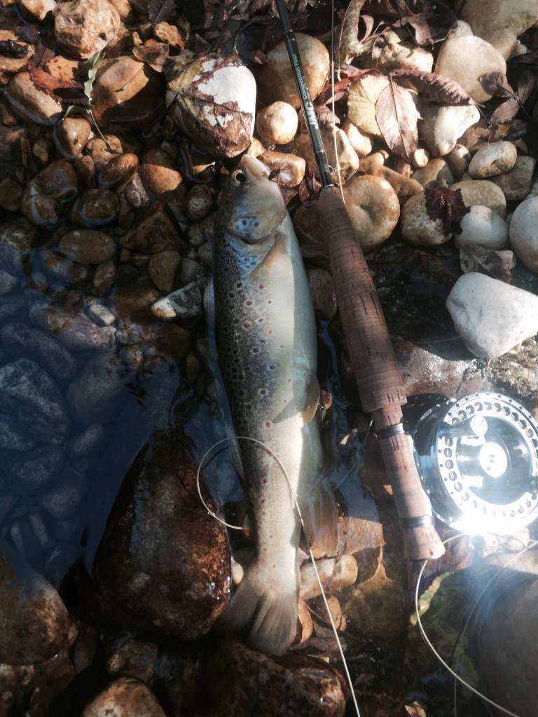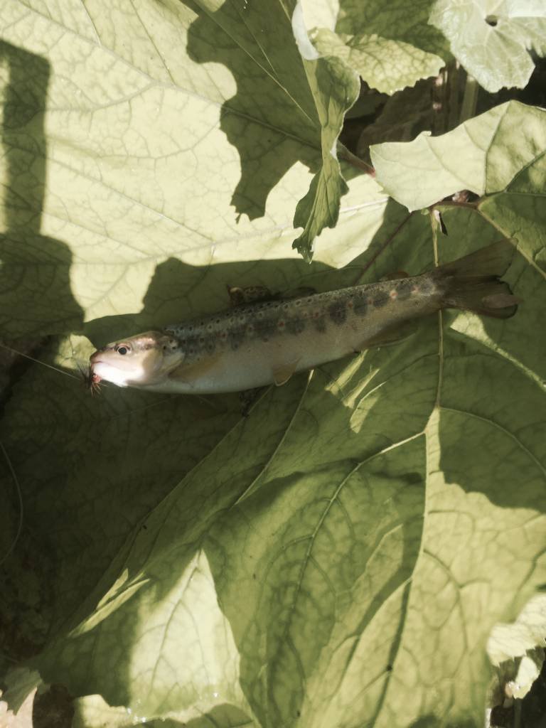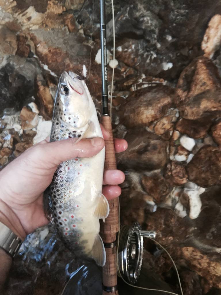 Ovviamente non mi sono tirato indietro quando in una lama di corrente lenta e profonda una piccola trota che non voleva saperne di salire sulle mosche voluminose che rifiutava sistematicamente ed allora ho legato al finale la mia infallibile Scarpantibus che l’ha ingannata ed ho avuto la riprova che questa mosca (che deve essere sempre presente nella nostra scatola) cattura anche in torrente.