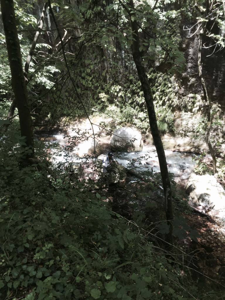 Dopo 3 ore di pesca, stanco ma soddisfatto, ho ripreso il sentiero del ritorno e dopo 170 scalini ripidissimi e 20 minuti di ascesa sono riemerso nel bagliore estivo dalla gola profonda, per me paradisiaca, in cui mi ero immerso lontano dai problemi e dal ritmo della nostra era moderna.