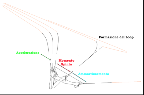 Adesso pronti per il lancio in avanti, ipotizzando di non aver commesso errori abbiamo: coda alta e tesa alle spalle, vettino carico in virtù della velocità prodotta attraverso un loop stretto, e canna leggermente indirizzata alle spalle.
