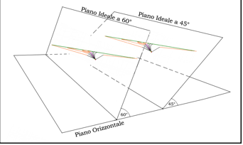 A seconda del lancio che ci apprestiamo ad eseguire, adotteremo il piano più adeguato a quel lancio; nell’angolato il piano ideale su cui eseguire il lancio è quello che forma un angolo compreso tra i 45° e i 60° con il piano dell’acqua, considerando l’angolo 0° il piano dell’acqua stesso (figura 4).