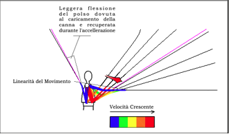 In virtù del cambio di direzione che abbiamo prodotto sulla coda e della accelerazione che stiamo imprimendo alla massa della coda stessa, otterremo come risultato un incremento di caricamento del vettino, ed è molto importante che il lanciatore impari a percepire tale caricamento (in maniera un po’ rozza si potrebbe dire di avvertire il vettino che si “appesantisce”) in quanto è solo così che si riesce a capire il momento migliore per applicare il momento spinta.